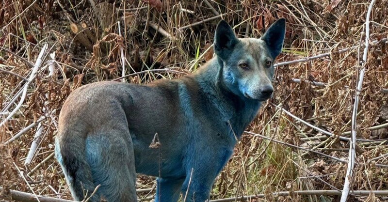 A explicação mais plausível? Tintas ou resíduos químicos deixados por algum equipamento industrial — talvez uma casa de banho portátil avariada — com os cães a “testarem” a cor sem querer. Uma espécie de spa radioativo, mas versão canina.