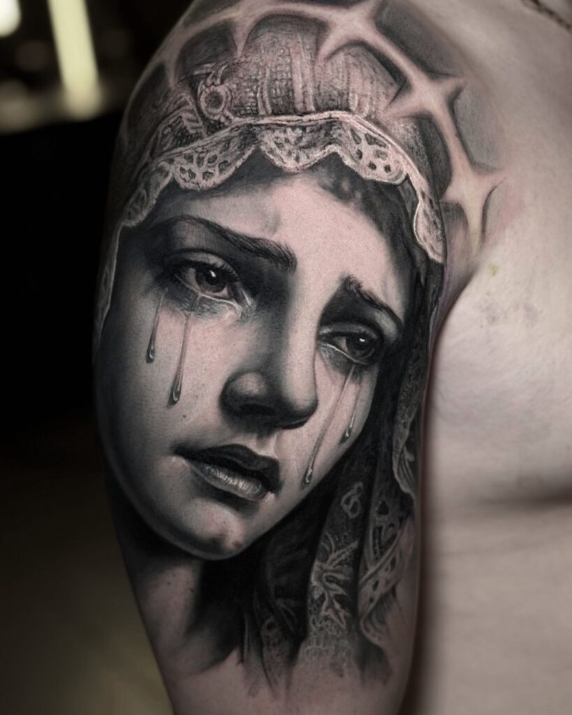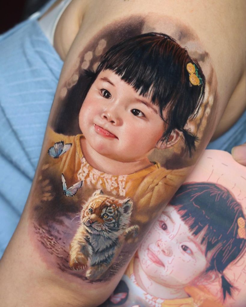 As suas tatuagens a cores conseguem reproduzir sombras, luz, textura e profundidade com tal precisão que parecem imagens em alta definição. Estamos a falar de retratos que captam expressões humanas com uma fidelidade impressionante, como se a pele fosse um ecrã.