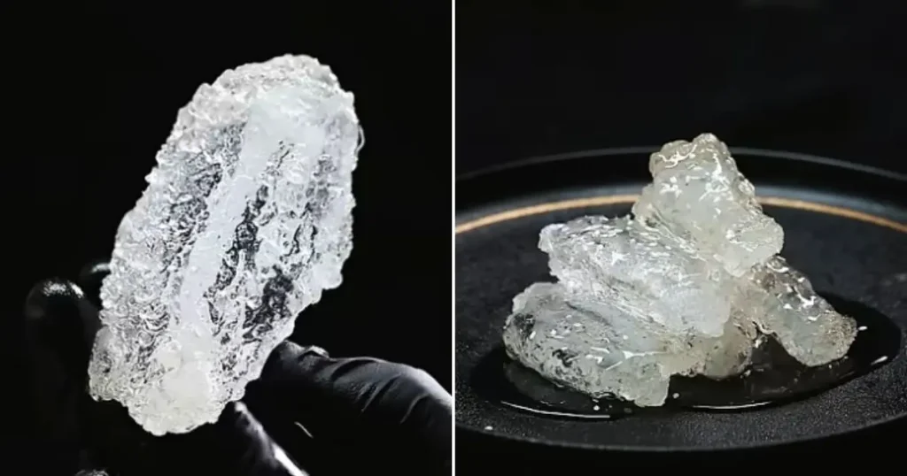 A parte verdadeiramente notável é que Cai Nan conseguiu ainda recriar a camada exterior crocante do frango frito convencional — o panado, a textura, a aparência dourada — mas numa versão que, vista contra a luz, revela o interior translúcido como se fosse uma jóia comestível. O contraste entre o revestimento clássico e o interior impossível é o que torna a criação genuinamente extraordinária.