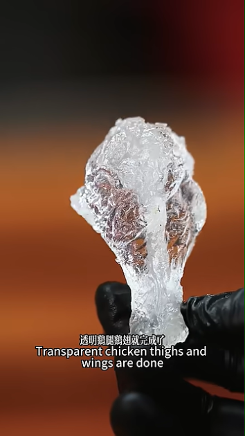 O vídeo que Cai Nan publicou no YouTube — com o título honesto e absolutamente desconcertante “Quero tornar o frango frito transparente, mas o resultado é estranho” — acumulou quase um milhão de visualizações em poucos dias, e é fácil perceber porquê. É impossível olhar para aquilo e não querer perceber como foi feito.